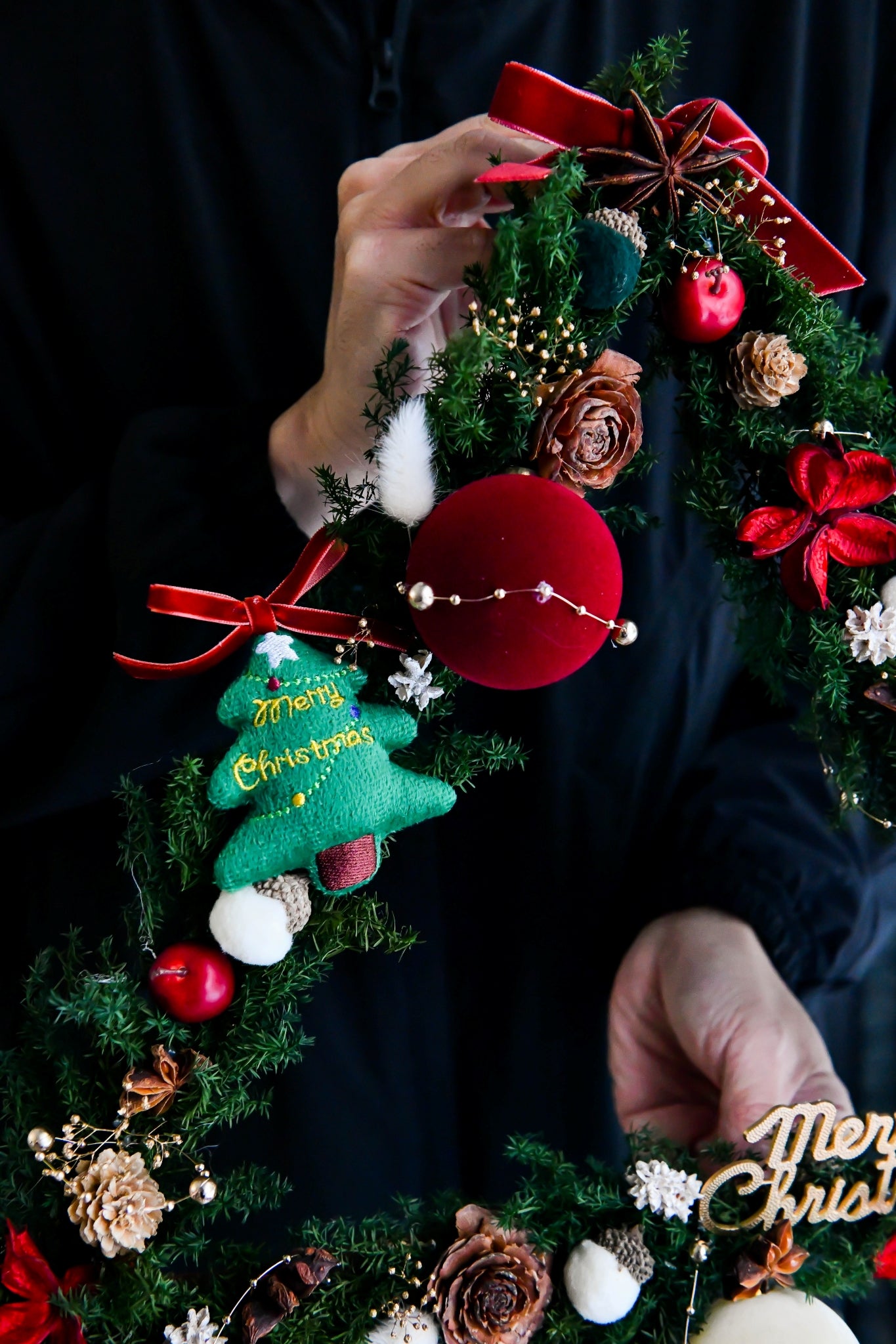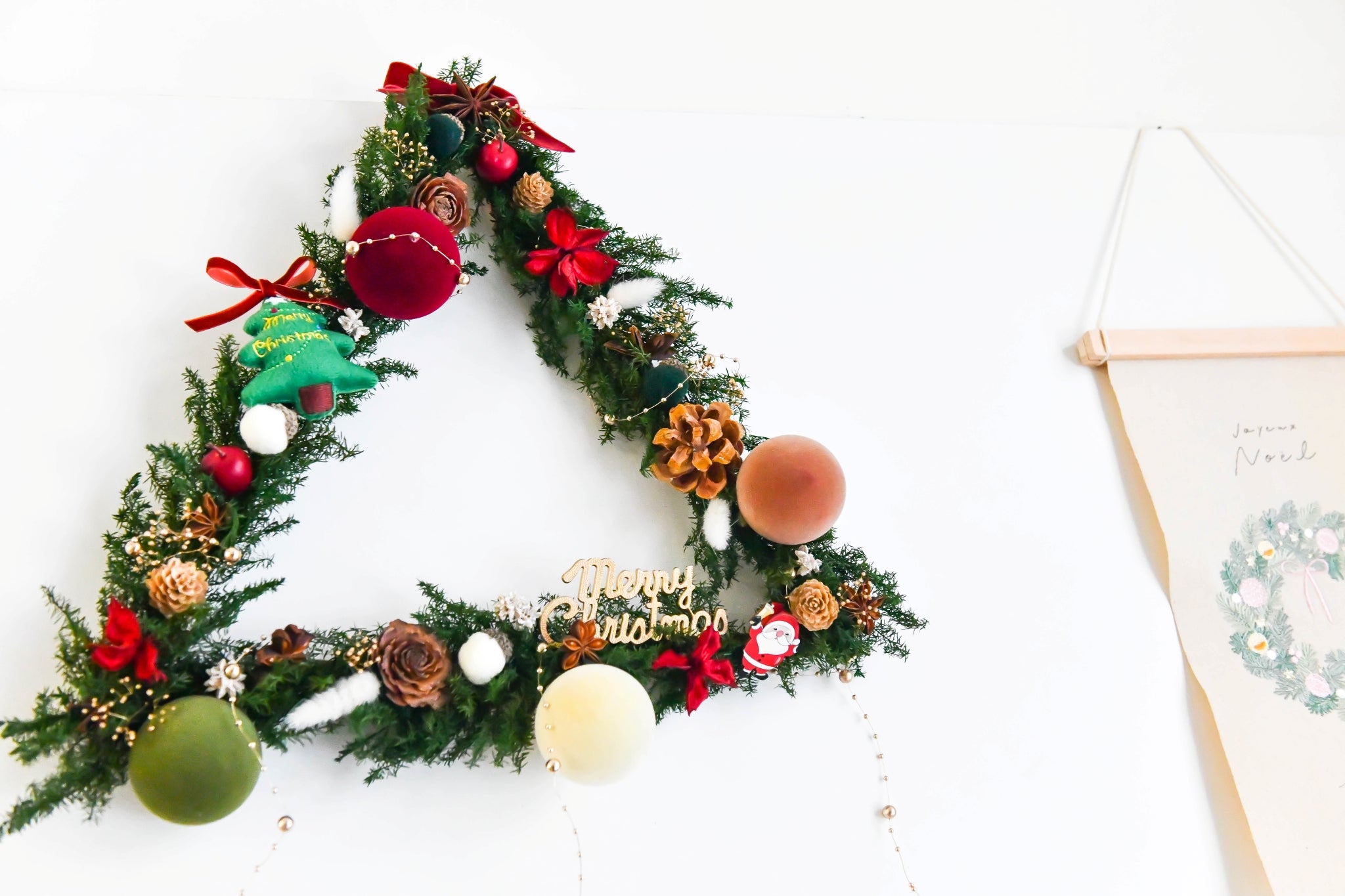 這款三角形雪松花圈靈感是取自聖誕樹的象徵形狀,