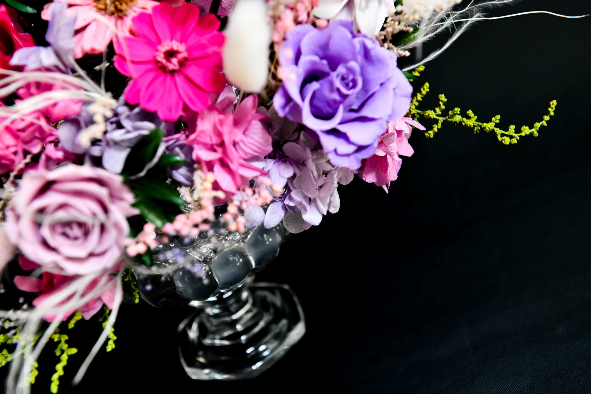 由 COCOBOLO FLOWER 所設計的恆星花(不凋花)作品主要為日本進口花材,
