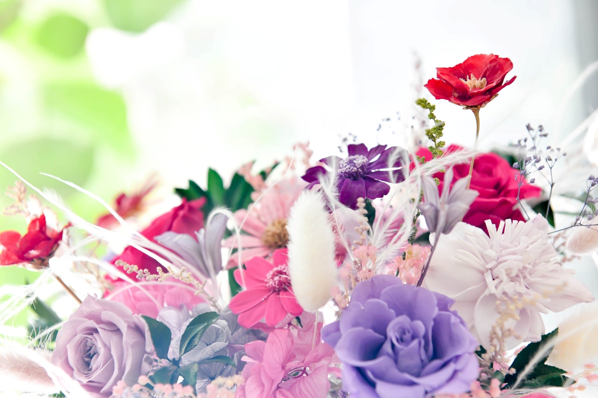 平日無須澆水或刻意照顧。以更多元創意設計運用在結婚喜慶、商業展示、居家裝飾等